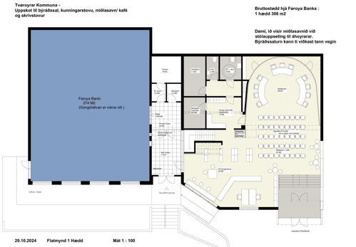 Nú skeyti er undirskriva í dag 24. apríl 2025, gerst Tvøroyrar Kommuna eigari av allari ognini á Sjógøtu 2-4. Eisini er langtíðarsáttmáli undirskrivaður millum Tvøroyrar kommuna og Føroya Banki um, at bankin leigar verandi avgreiðsluhølir á veghæddini, umframt partar av 1. hæddini, samsvarandi leigusáttmála og tørvin hjá bankanum.